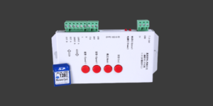 Unlike the T1000S and other older pixel LED controllers, the K-1000C Pixel LED controller has four buttons. On the right side, there are chip selection buttons, mode selection buttons, speed decrease buttons, and speed increase buttons. Here are the functions of these buttons: The first button is for chip selection; once pressed, it will change the chip group to the next chip group. The second button is for changing the program. By pressing it, you can change the program to the next one. Also, it can be used to change the effects (built-in) when there is no SD card. The third and fourth buttons are for playback speed control (Speed + for increasing the speed, and Speed – for decreasing the speed).